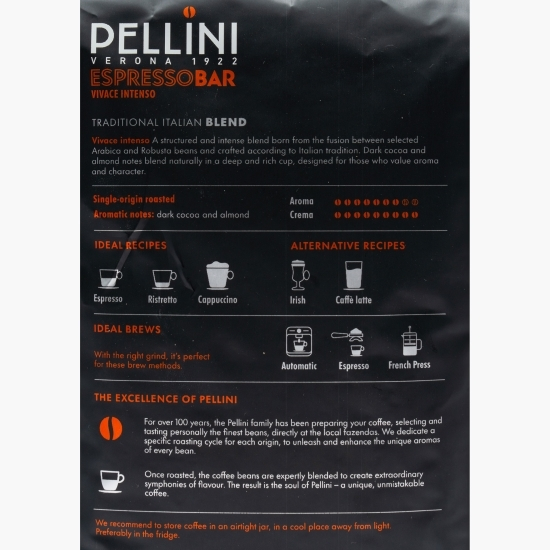 Vivace Intenso Barista este alegerea ideală pentru cei care caută gustul inconfundabil al cafelei savurate în barurile italiene. Acest sortiment premium, succesorul celebrului Pellini Classico, păstrează rețeta tradițională care l-a consacrat, fiind optimizat pentru a oferi un espresso puternic, plin de energie și savoare.